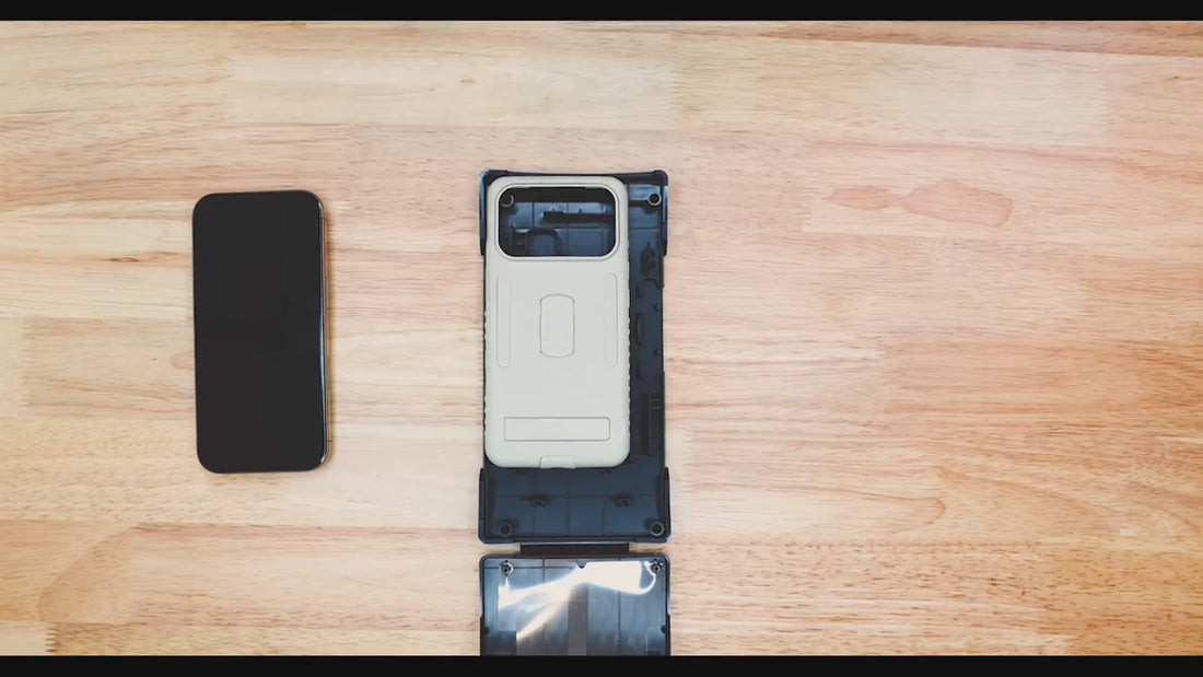 The shipping box doubles as a screen protector installation tool for precise application.