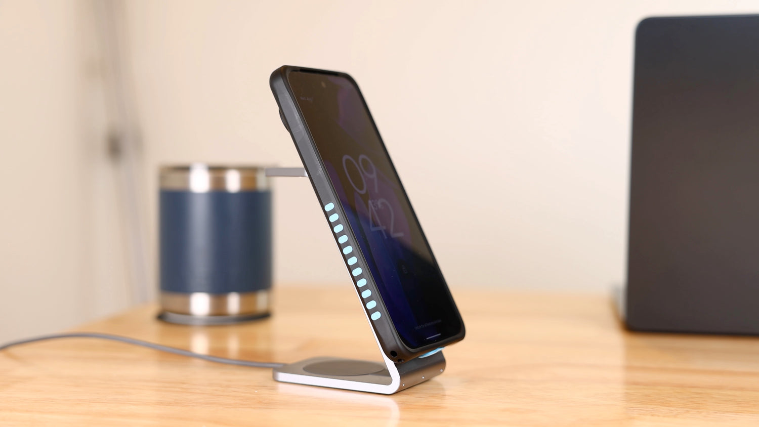 Easy to deploy and stow with one quick action. Supports wireless charging.
