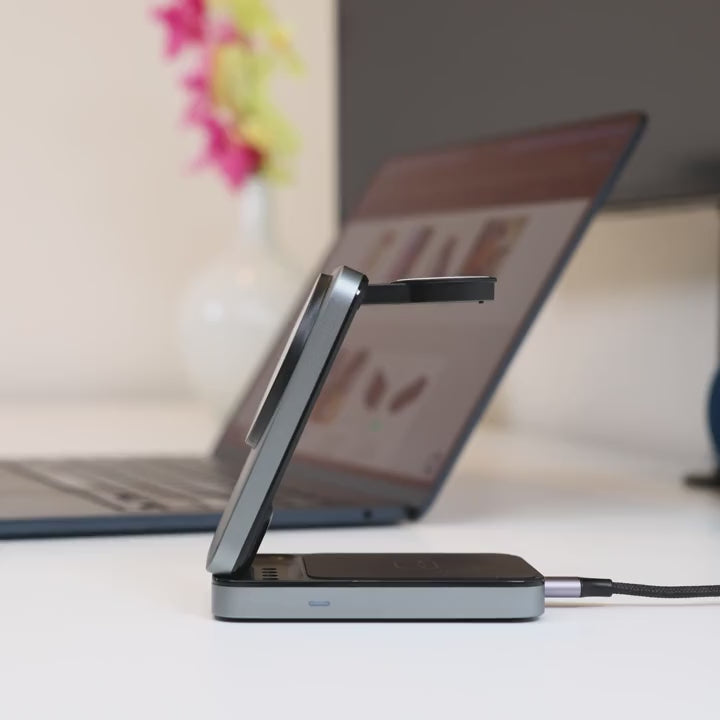 The perfect charging setup anywhere you go. Available for Apple or Samsung ecosystems.