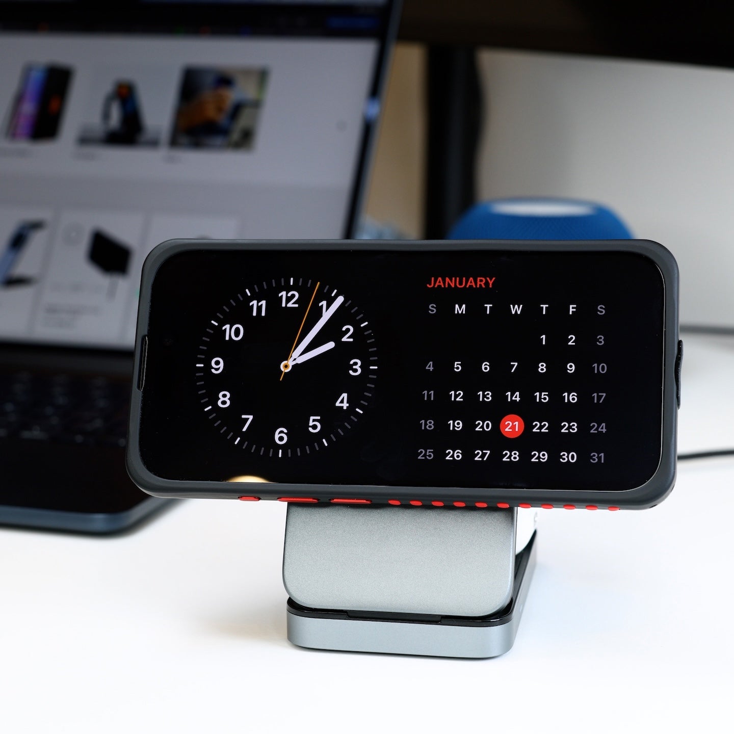 Unlock FaceID at a glance, FaceTime, watch Videos or use StandBy at the perfect viewing angle. Mount your iPhone in landscape or portrait.